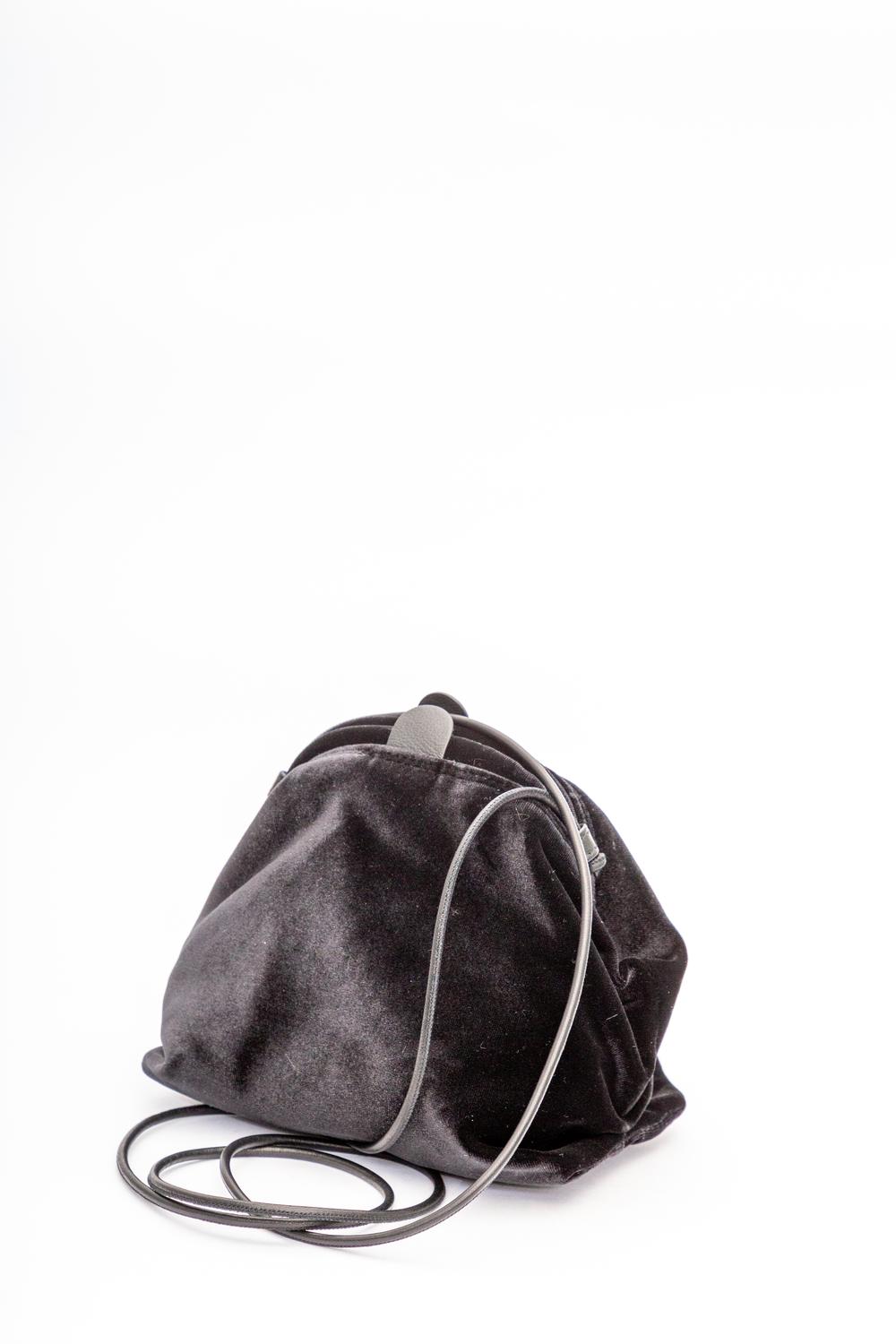 Piccola borsa perfetta per una cerimonia o per una serata speciale. In velluto color grigio perla. Chisura a scatto foderata in velluto. Tracolla in nappa. Foderata in cotone.