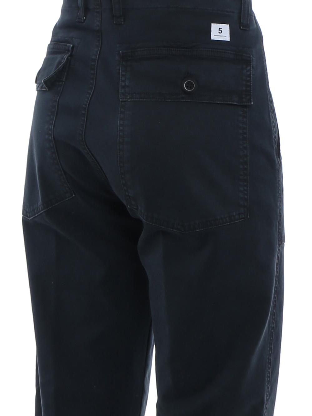 Pantalone casual in cotone lavato antracite. Tasconi applicati sul fronte con taglio america e maxi tasche applicate posteriormente con pattina e bottone in tinta. Chiusura con zip e bottone. Carrè più alto sul retro.