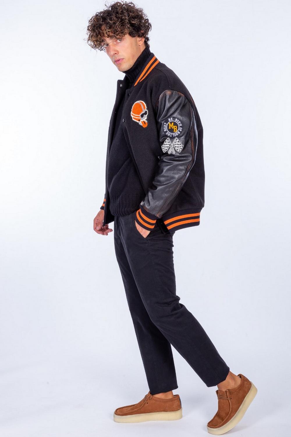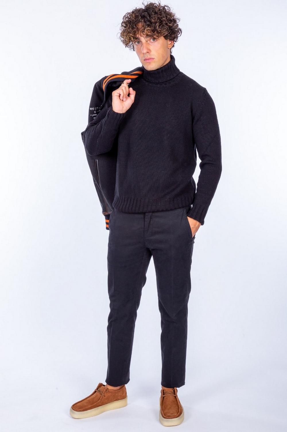 Pantalone chinos in fustagno nero. Gamba asciutta e fondo stretto e corto. Chiusura con zip coperta da patta, e due bottoni di cui uno interno. Due tasche laterali america e tasche posteriori con patta e bottone nascosto.