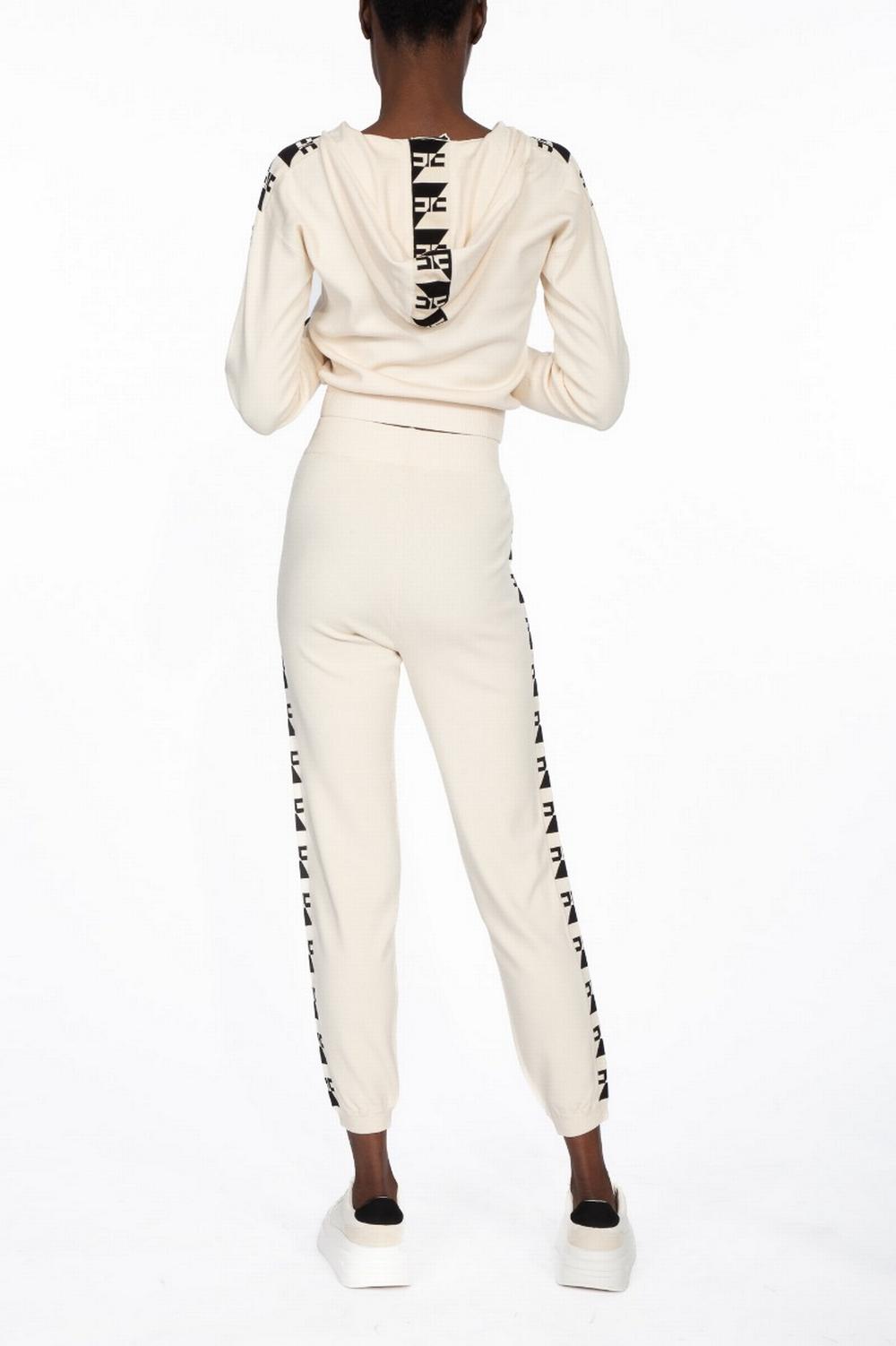 Pantaloni modello jogger in maglia di misto viscosa color burro. Bande laterali con logo doppia C burro e nero. Fascia elastica in vita e alle caviglie.