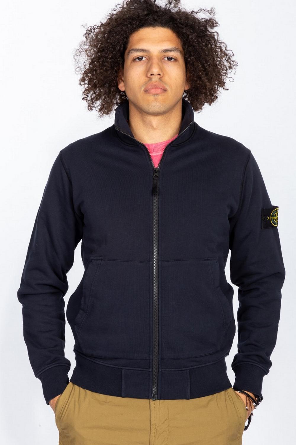 Felpa full zip, il cotone blu navy. Collo alto. Cerniera tono su tono. Tasche a marsupio sul fronte. Cuciture sul giromanica e girocollo a vista, tono su tono. Bordi in costina. Logo patch applicato sulla manica sinistra, rimovibile per il lavaggio.