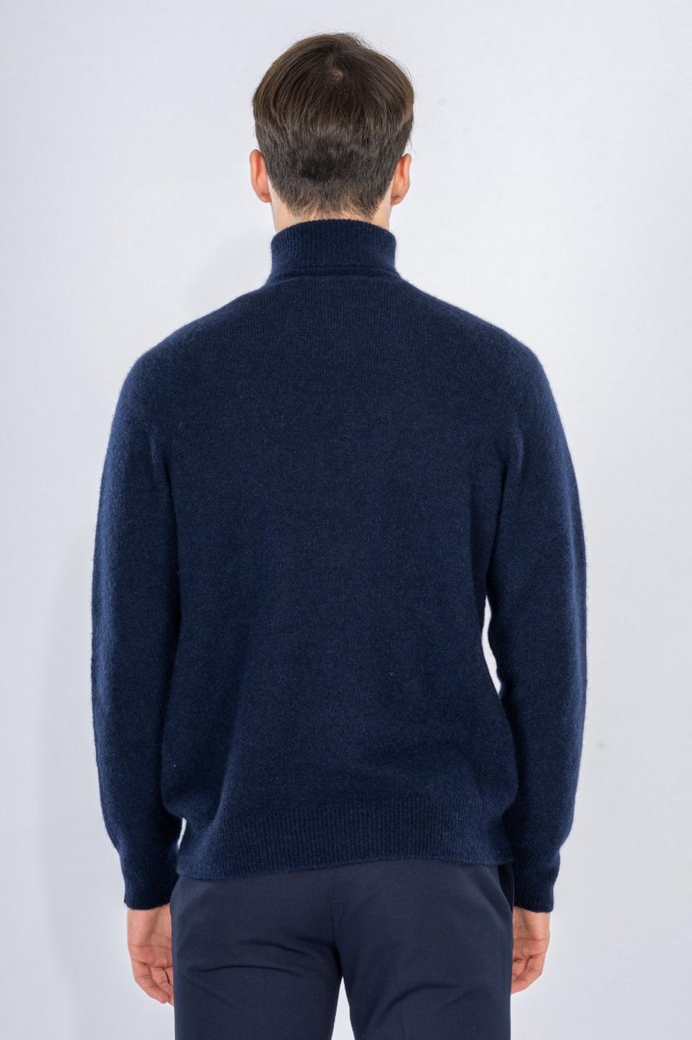 Maglia dolcevita in morbidissimo cashmere blu navy. Collo, fondo e polsi a coste.