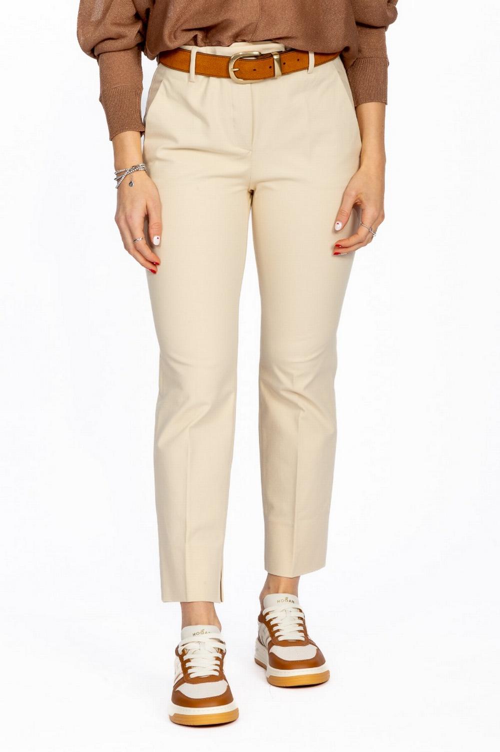 Pantalone dal design minimale e dettagli sartoriali. Cotone stretch confortevole, di colore beige. Tasche anteriori america, tasche posteriori a filetto. Piega centrale stirata. Fondo ampio con spacchetto interno. Chiusura con zip, gancetto e bottone nascosti.