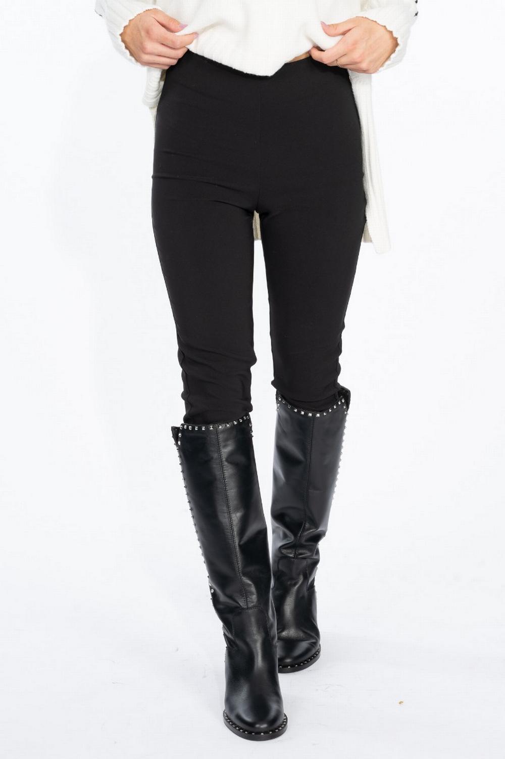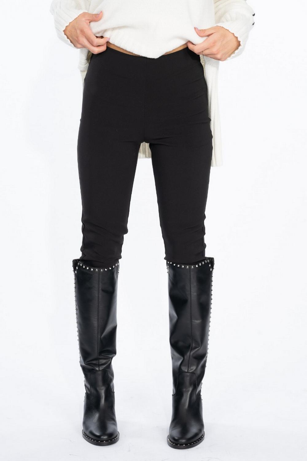 Leggings in tessuto stretch nero, con ghetta in elastico nero. Chiusura con zip laterale nascosta. Senza tasche. Vita medio-alta. Vestibilità aderente.
