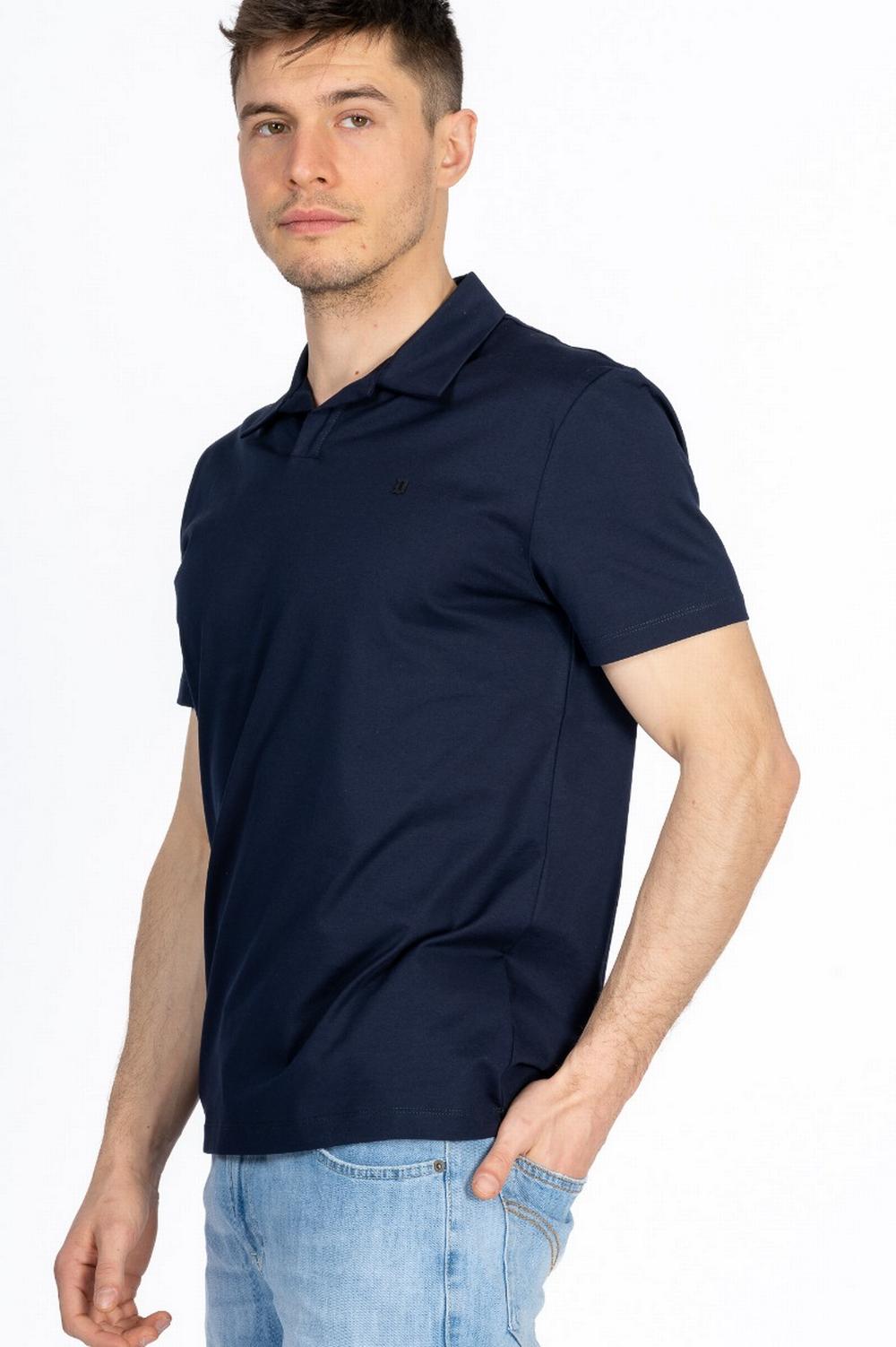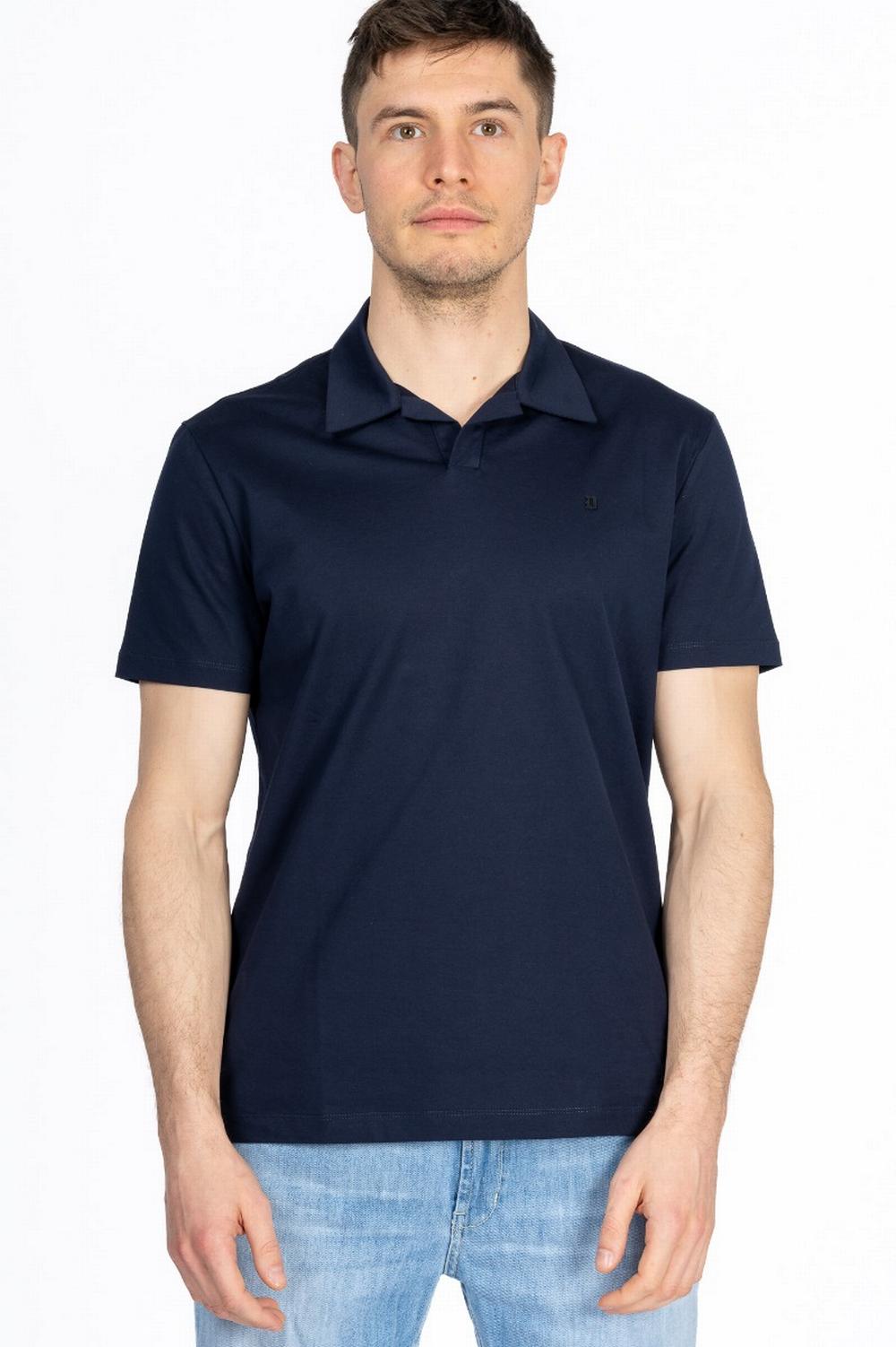 Polo in jersey di cotone di colore blu. Colletto classico senza bottoni di chiusura. Logo nero applicato sul petto. Due spacchetti laterali sul fondo.