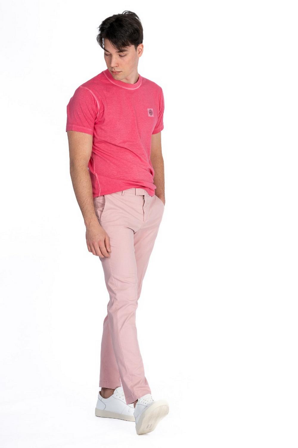 Pantaloni in lyocell e cotone leggermente elasticizzati color rosa. Linea Master Fit, con un cavallo leggermente ribassato e più morbido sulle cosce. Tasche laterali america e posteriori inserite con patta. Chiusura sovrapposta con zip e bottoni. Piega stirata.