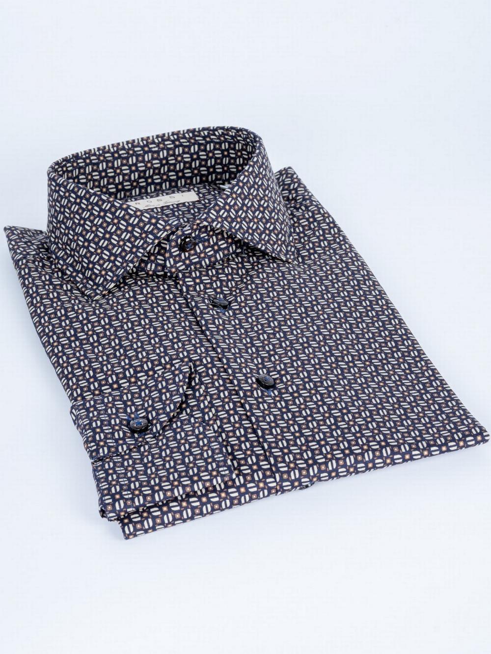 Rossi - Camicia Motivo Geometrico Blu/Marrone - BAG74A7