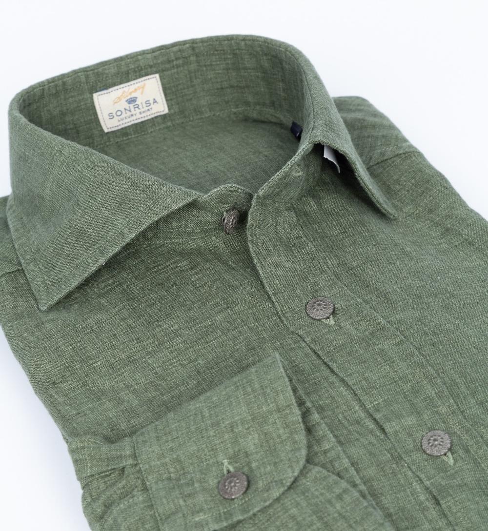 Sonrisa - Camicia Lino Verde Oliva Uomo - LS122 ID312508