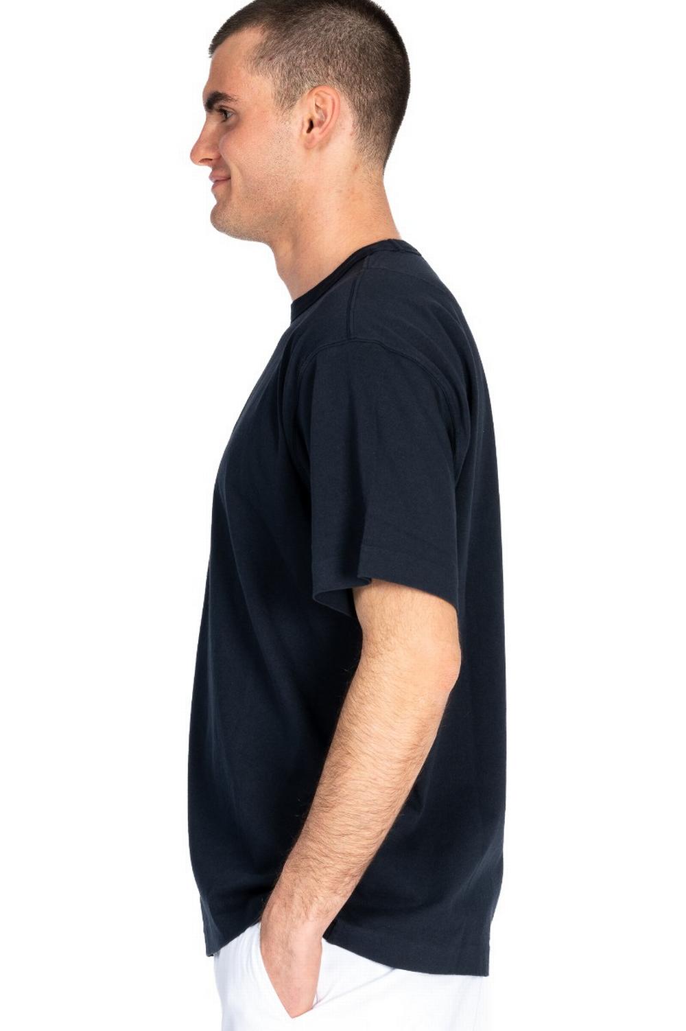 T-shirt girocollo, in cotone blu navy. Logo piccolo ricamato sul fronte al centro, tono su tono. Girocollo in costina.